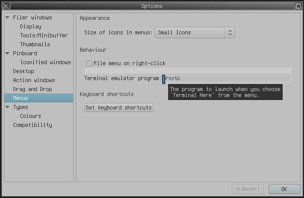 navigate through tabs to configure rox-filer